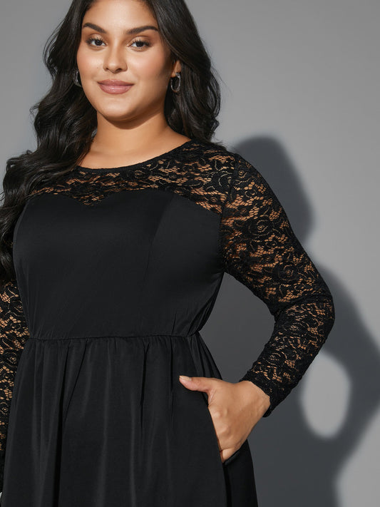 Velvet Patchwork Chiffon Keyhole Midi Dress