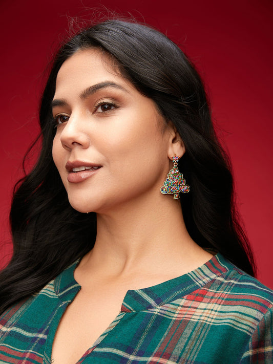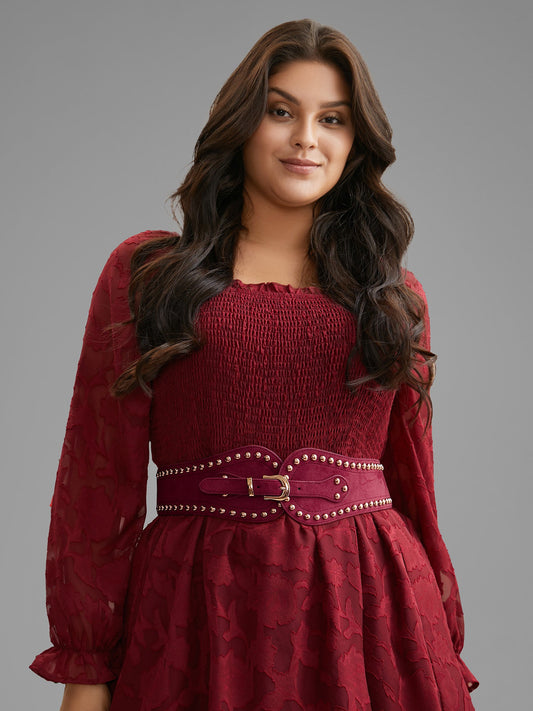 Rhinestone Cut Out Lantern Sleeve Blouse
