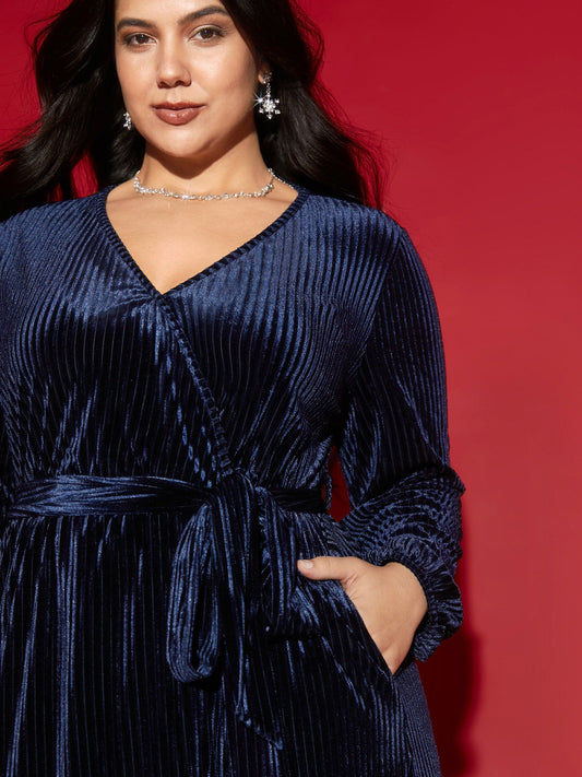 Velvet Surplice Neckline Waist-Tie Midi Dress