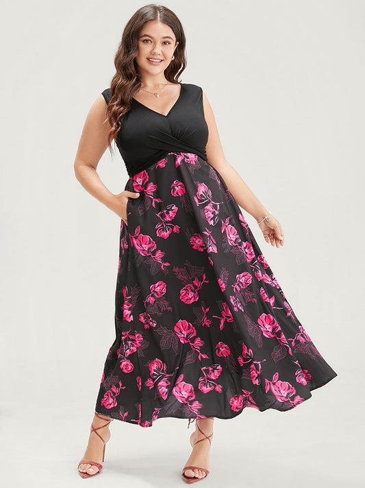 Floral Patchwork Twist Front Pocket Flutter Tank Dress