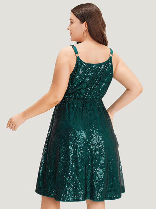 Sequin Pocket Metal Buckle Detail Cami Dress