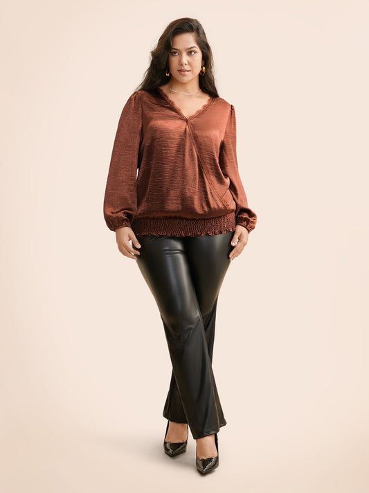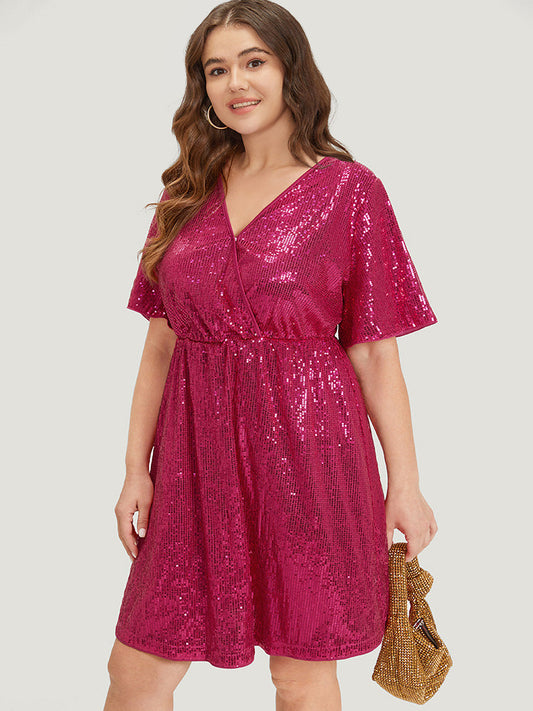 Solid Pocket Lantern Sleeve Wrap Sequin Dress