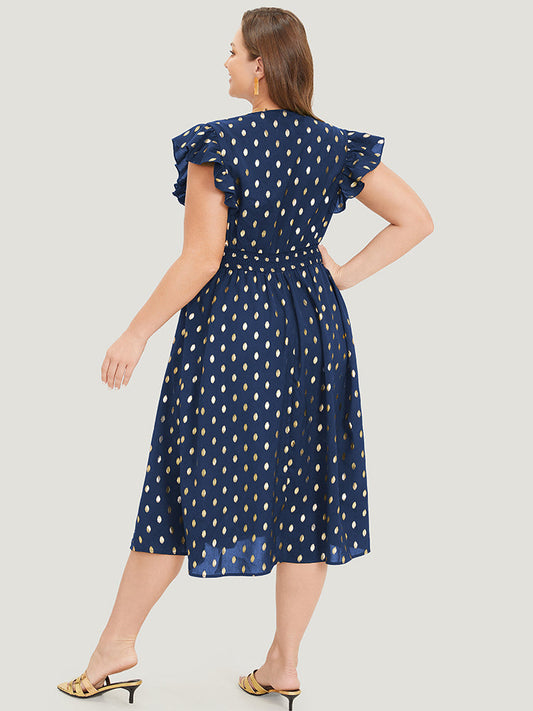 Polka Dot Glitter Flutter Sleeve Surplice Neck Dress