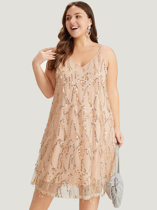 Sequin Fringe Trim Mesh Pocket Cami Dress
