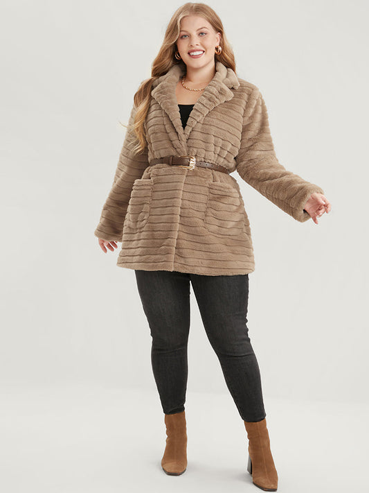 Solid Fuzzy Button Front Suit Collar Coat Without Belt