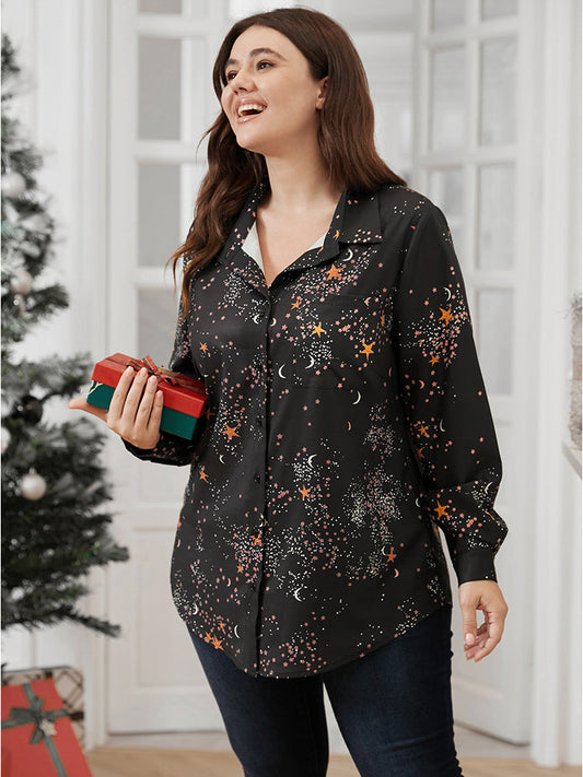 Star Print Pocket High Low Hem Belted Wrap Dress