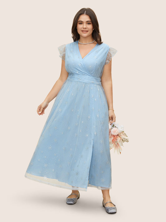 Overlap Collar Glitter Snowflake Mesh Dress