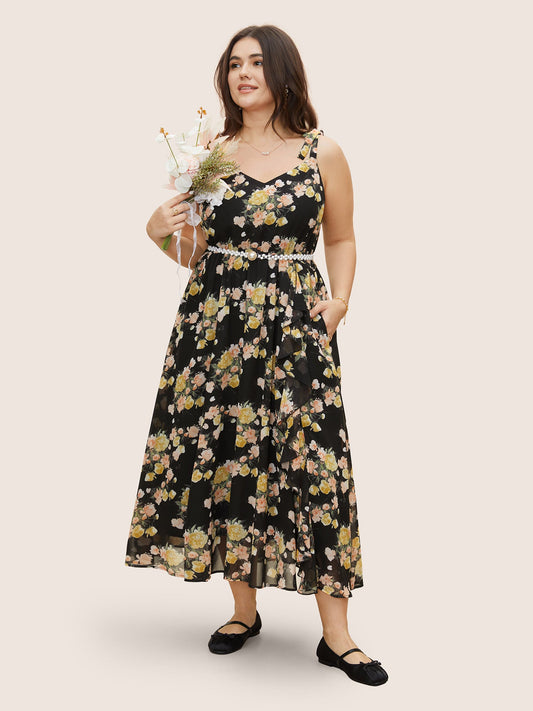 Floral Tie Knot Elastic Waist Dress