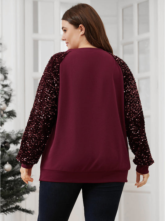 Solid Patchwork Cut Out Sequin Sweatshirt