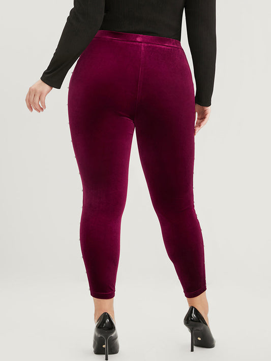 Solid Pearl Beaded Velvet Skinny Leggings