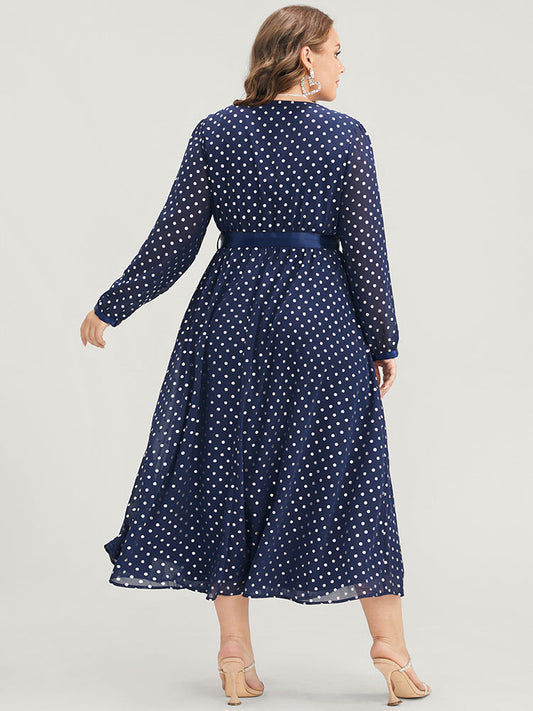 Polka Dot Wrap Lantern Sleeve Flutter Midi Dress