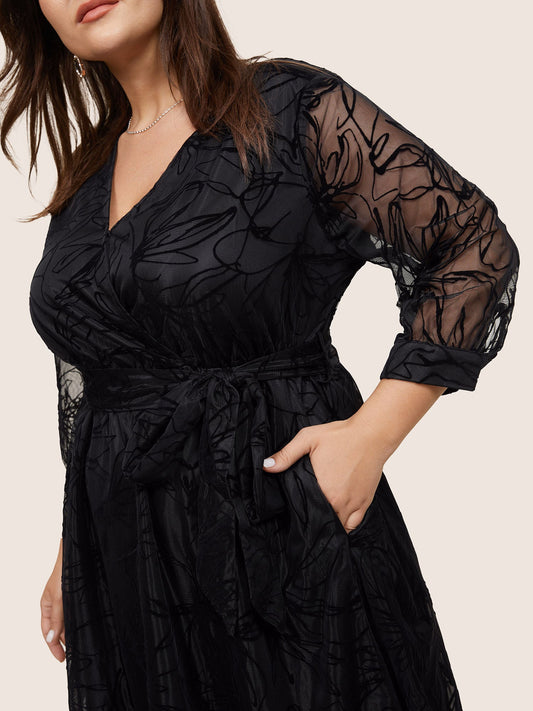 Floral Flocked Tulle Belted Dress