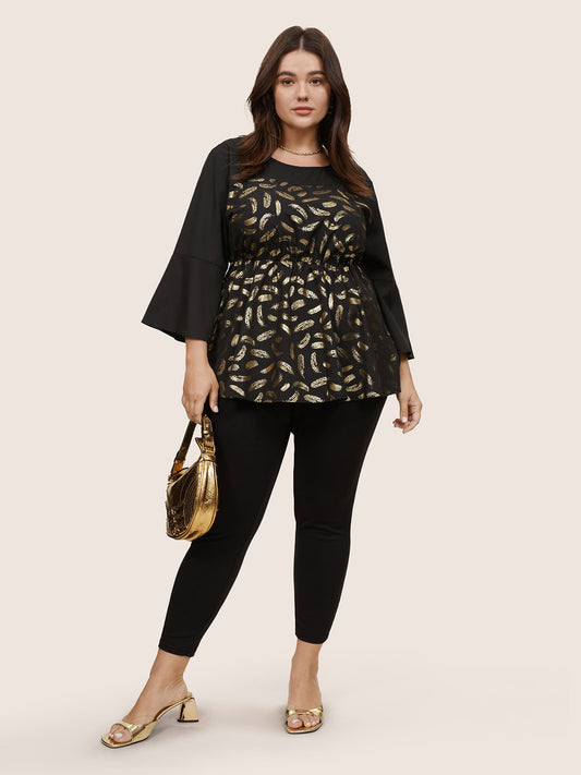 Feather Glitter Patchwork Bell Sleeve Blouse