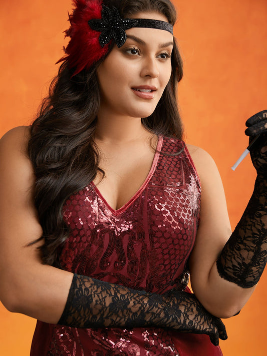 Midnight Glamour Fringe Sequins Velvet Midi Dress