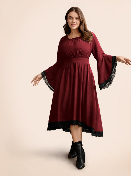 Gothic Inspired Lotus Sleeves Midi Dress
