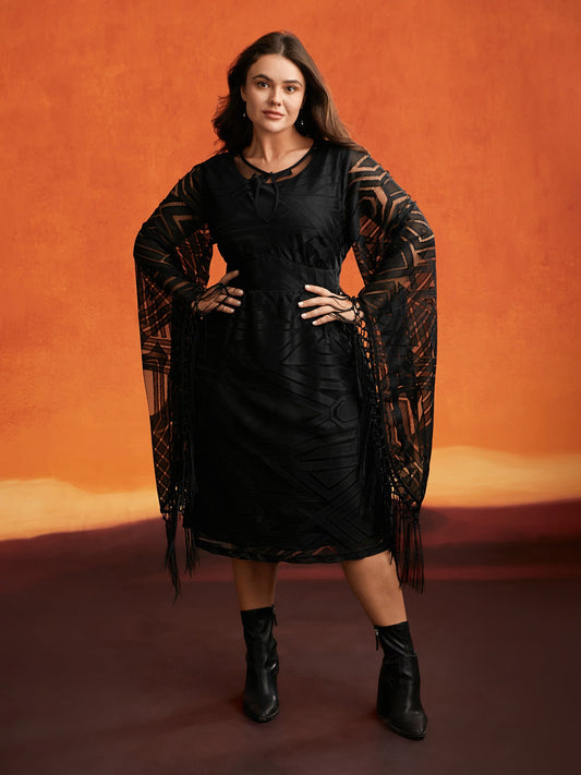 Spellbound Lace Sleeves Square Neckline Midi Dress