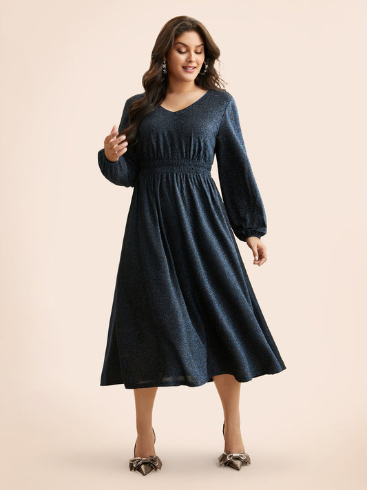V Neck Polka Dot Glitter Ruffle Sleeve Dress
