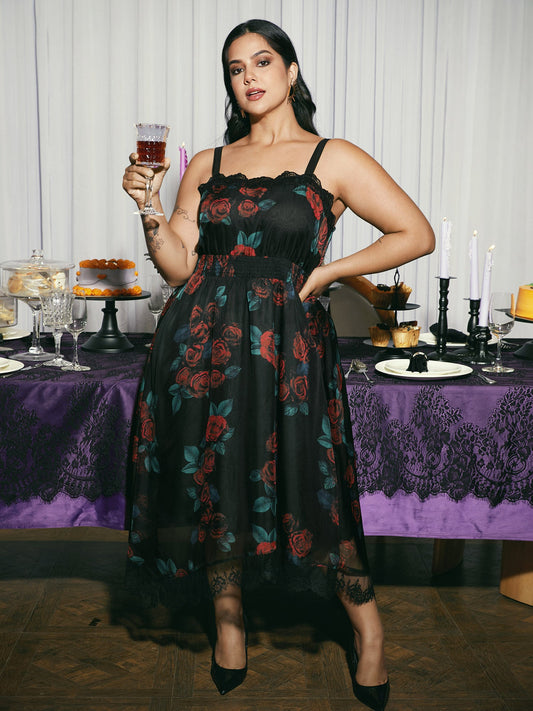 Dancing Ghosts Printed Off-Sleeves Midi Dress