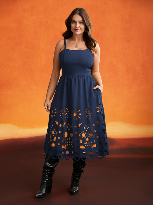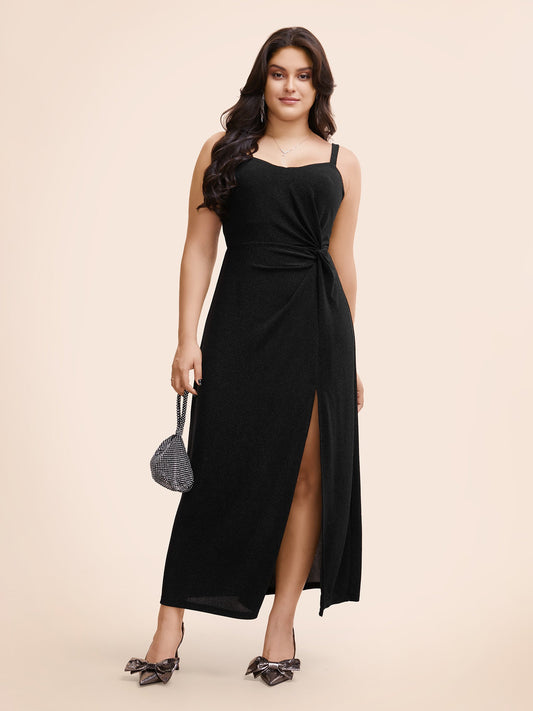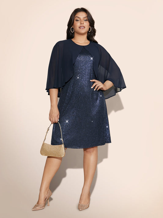 Heart Neckline Patchwork Sequin Button Detail Dress
