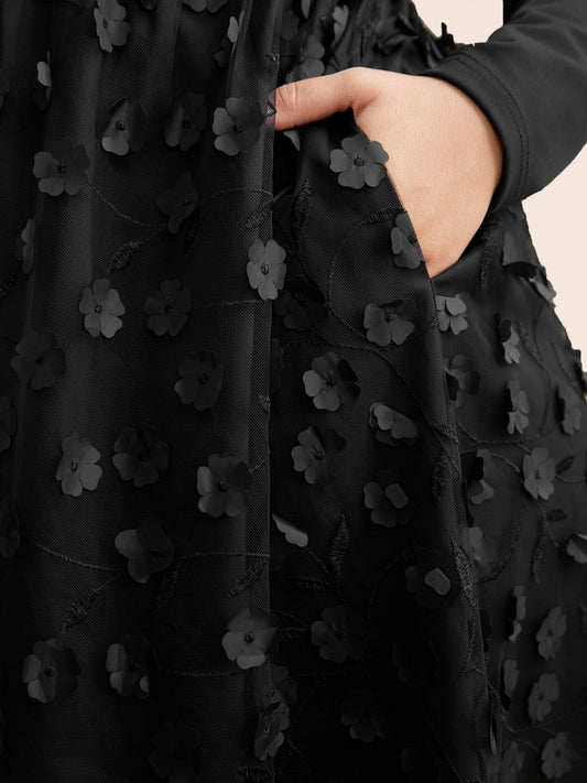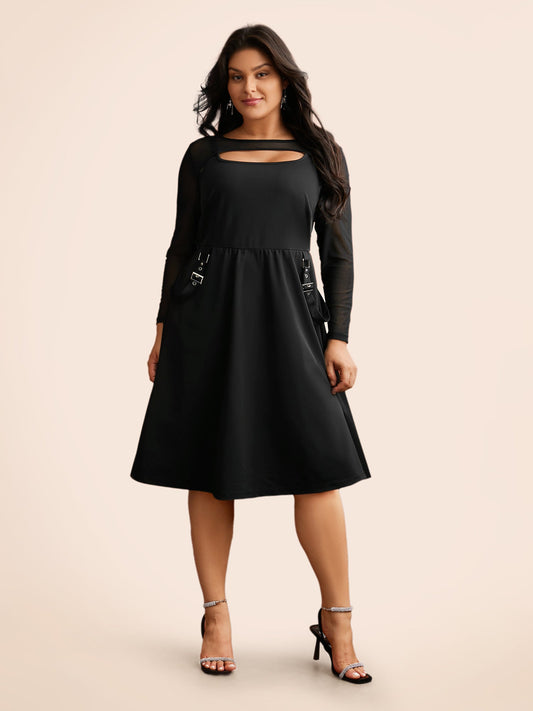 Round Neck Textured Mesh Patchwork Dress