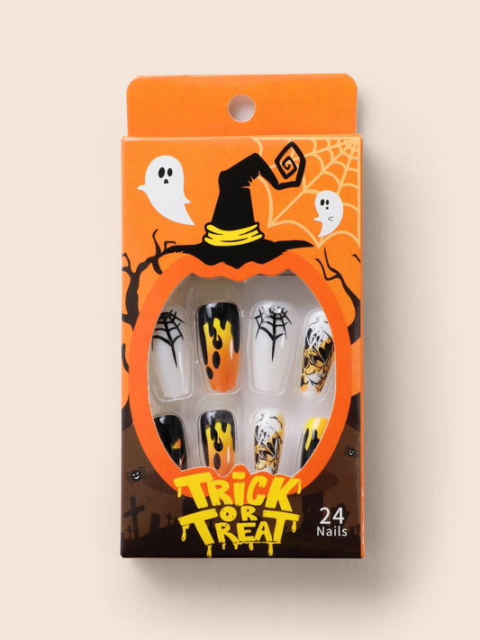 Pumpkin And Spider Web Nail Art