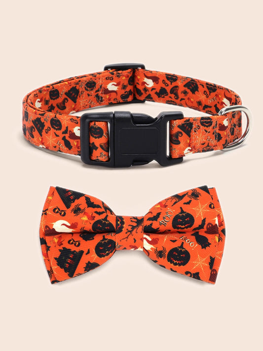 Jack-O-Lantern Pattern Bow Pet Collar