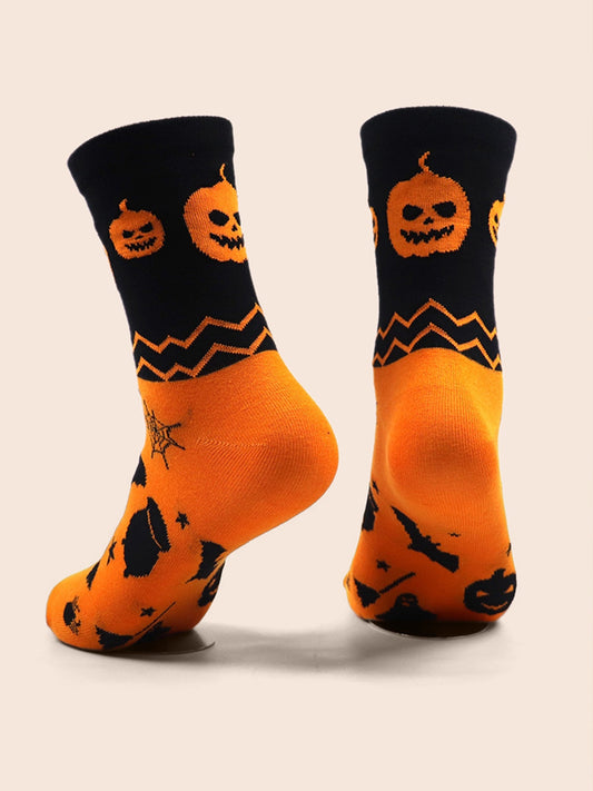 Pumpkin And Bat Themed Socks