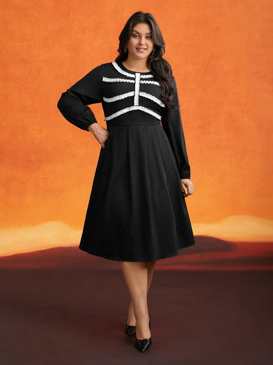Black And White Pleated Ribbon Midi Dress