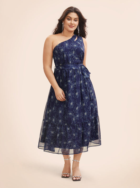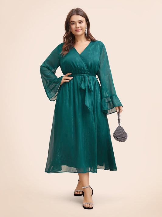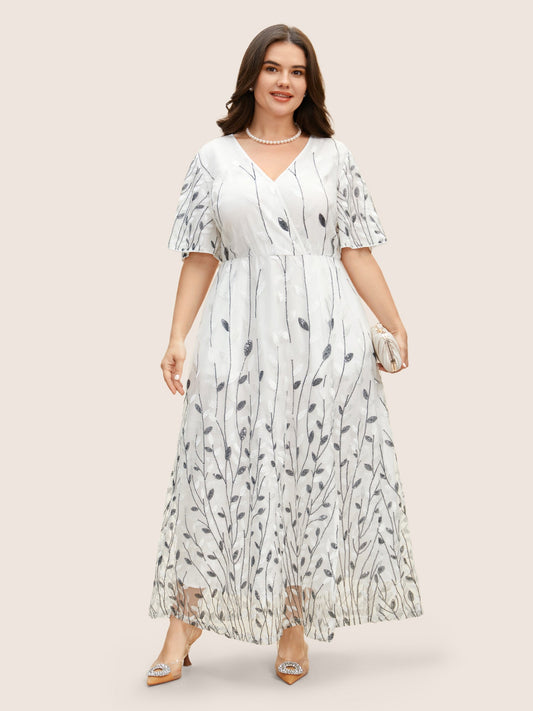Sequin Mesh Embroidered Wrap Split Hem Dress