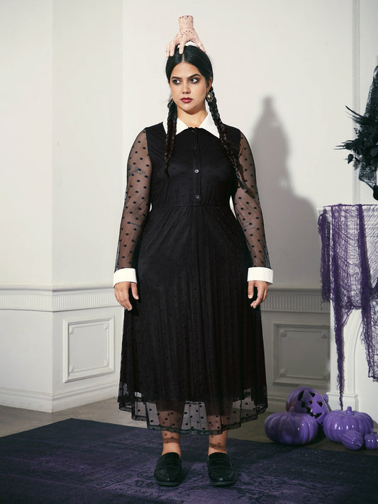Vampire Polka Dot Waist-Cinching Midi Dress