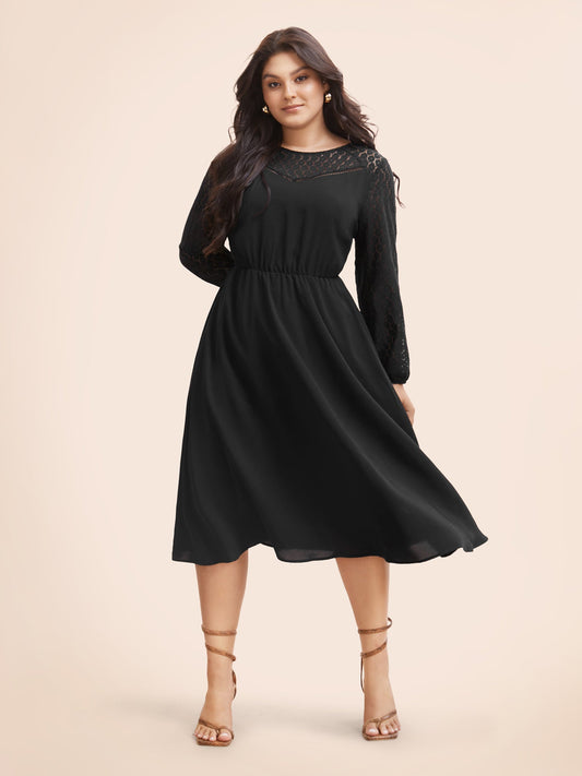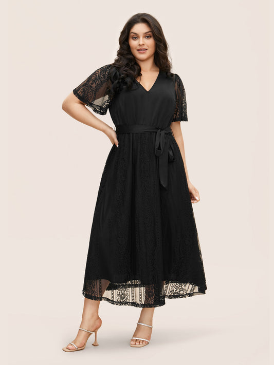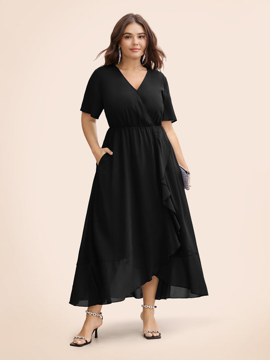 Chiffon Overlap Collar Ruffle Sleeve Dress