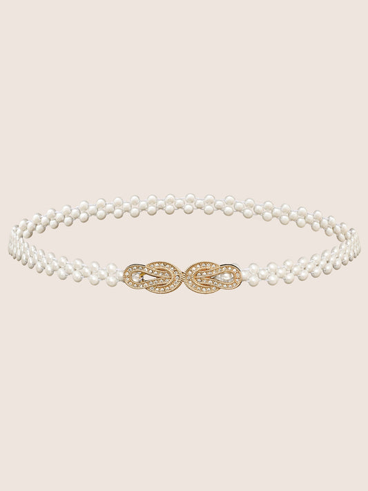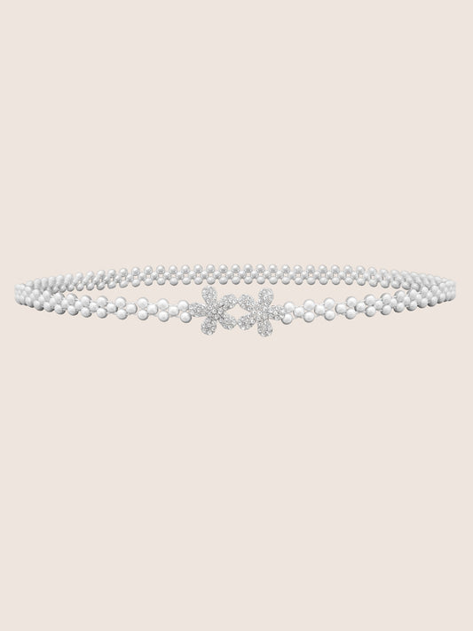 Floral Cubic Zirconia Faux Pearl Decor Belt
