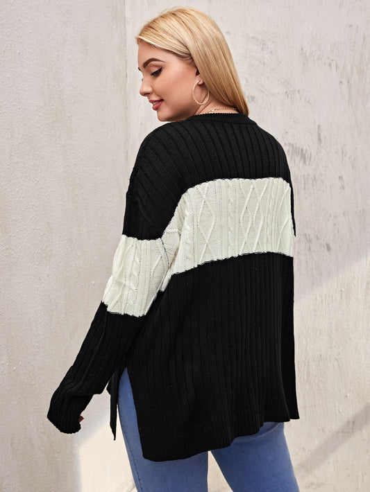 Color Block Drop Shoulder Split Hem Sweater