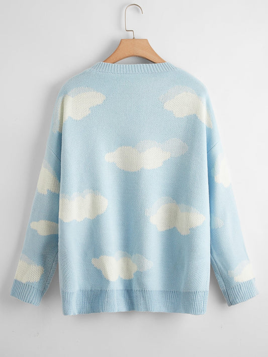 Cartoon Cloud Pattern Drop Shoulder Sweater