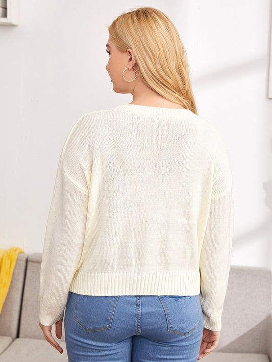 Drop Shoulder Embroidery Floral Sweater