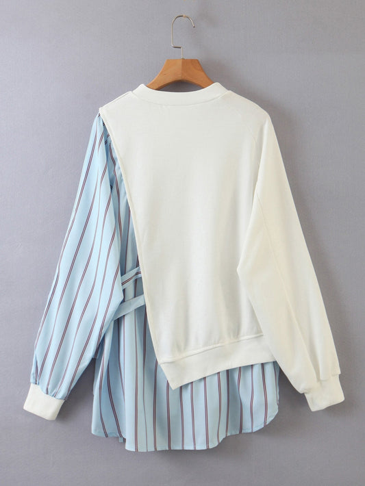 Contrast Striped Panel Knot Side Dip Hem Sweatshirt