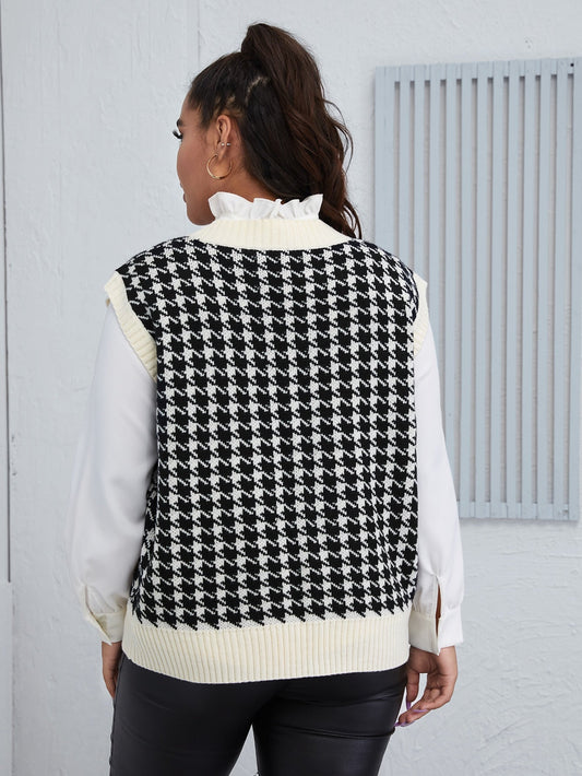 Houndstooth V-neck Rib Sweater Vest