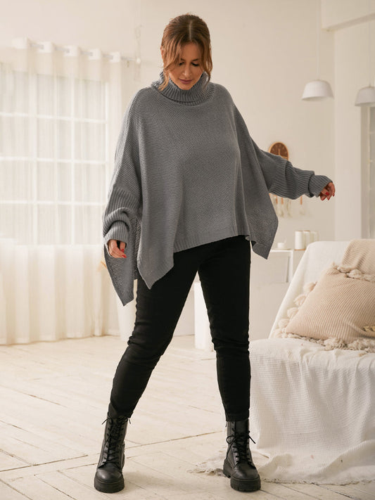 Funnel Neck Irregular Hem Sweater