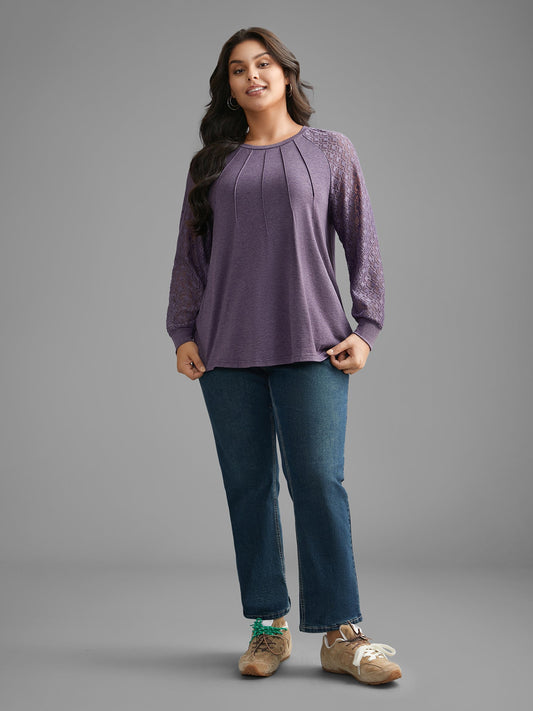Lace Patchwork Pleated Raglan Sleeve T-shirt