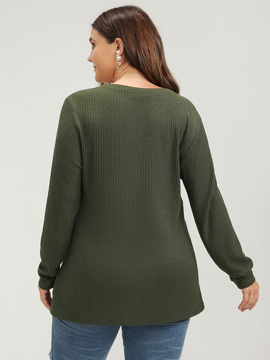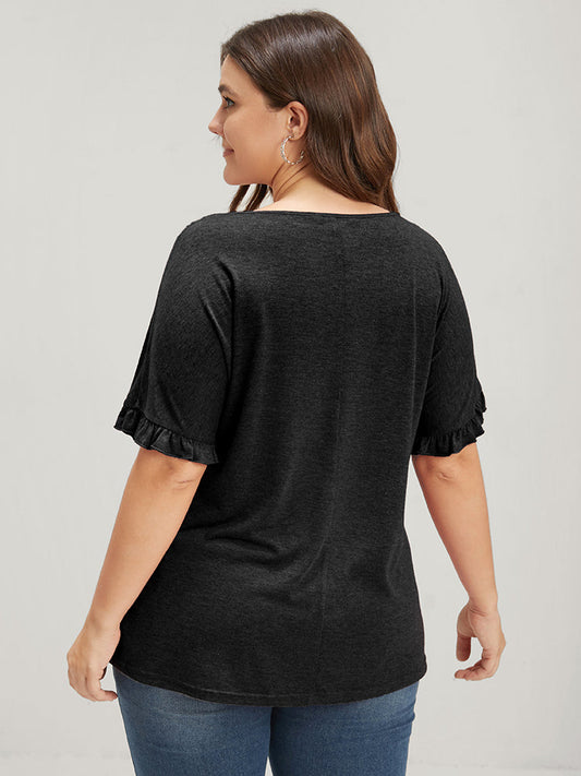 Colorblock Contrast Fake Button Cuffed Sleeve T-shirt
