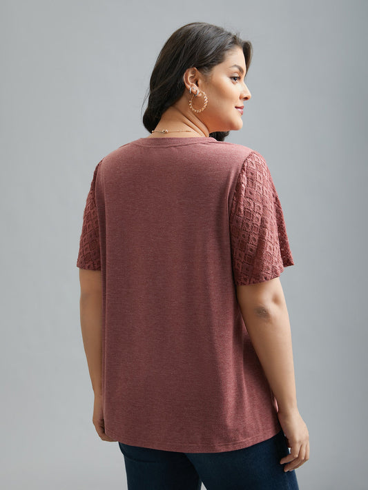 Solid Contrast Lace Ruffle Sleeve T-shirt