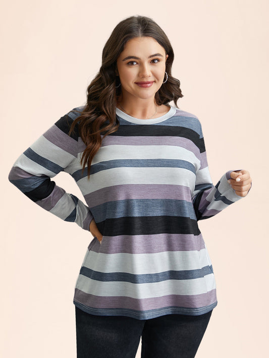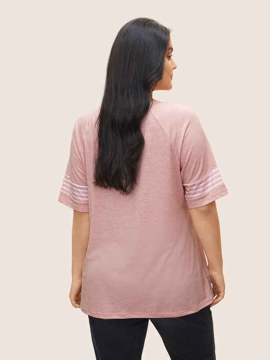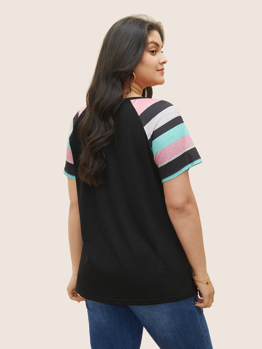 Striped Contrast Raglan Sleeve Round Neck T-shirt