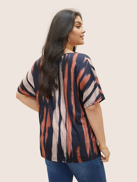 Striped Contrast Dolman Sleeve V Neck T-shirt