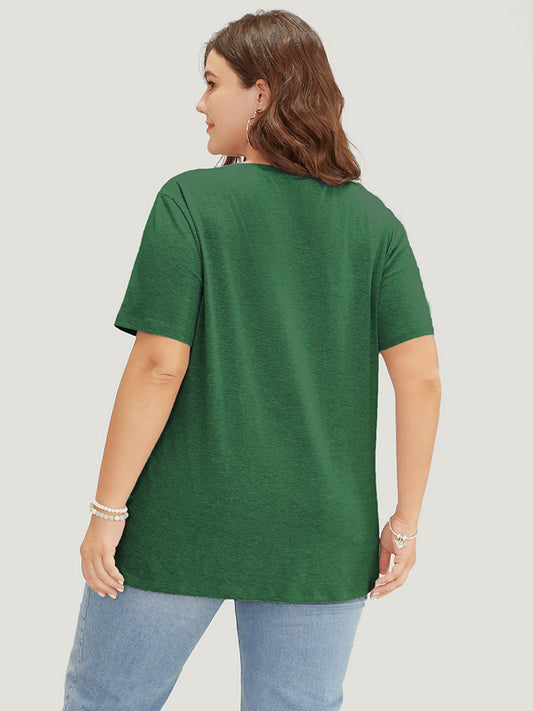 Plant & Cat Print Short Sleeve Drop Shoulder T-shirt