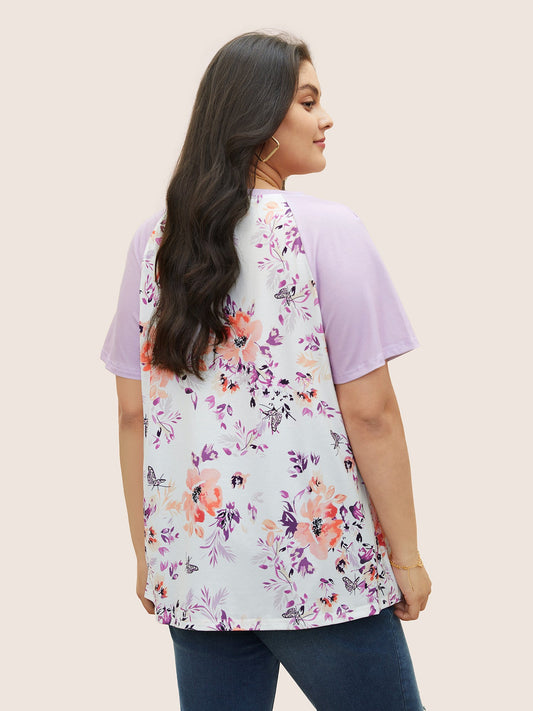 Floral & Butterfly Print Raglan Sleeve T-shirt