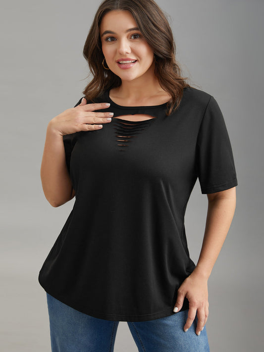 Stretchy Ripped Neck Fitted T-Shirt