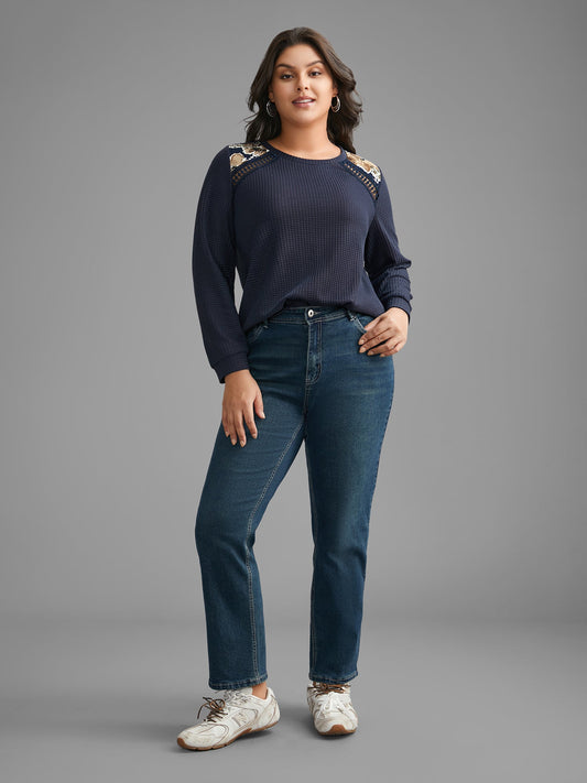 Round Neck Floral Patchwork Stretchy T-shirt