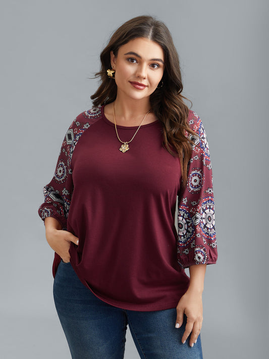 Boho Print Sleeve Round Neck T-Shirt