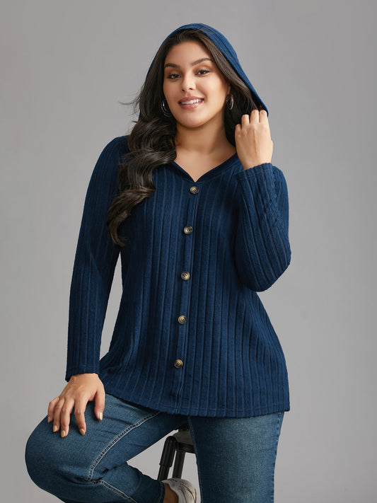 Striped Pit Button Front Hooded T-shirt