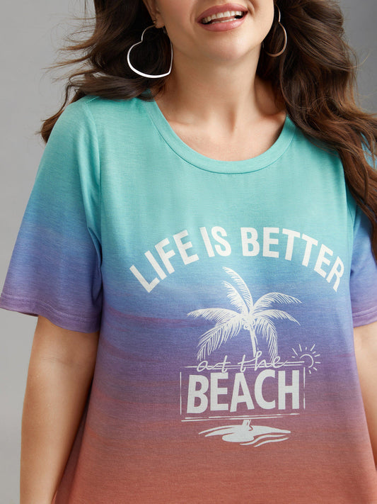 Gradient Beach Print Fitted T-Shirt